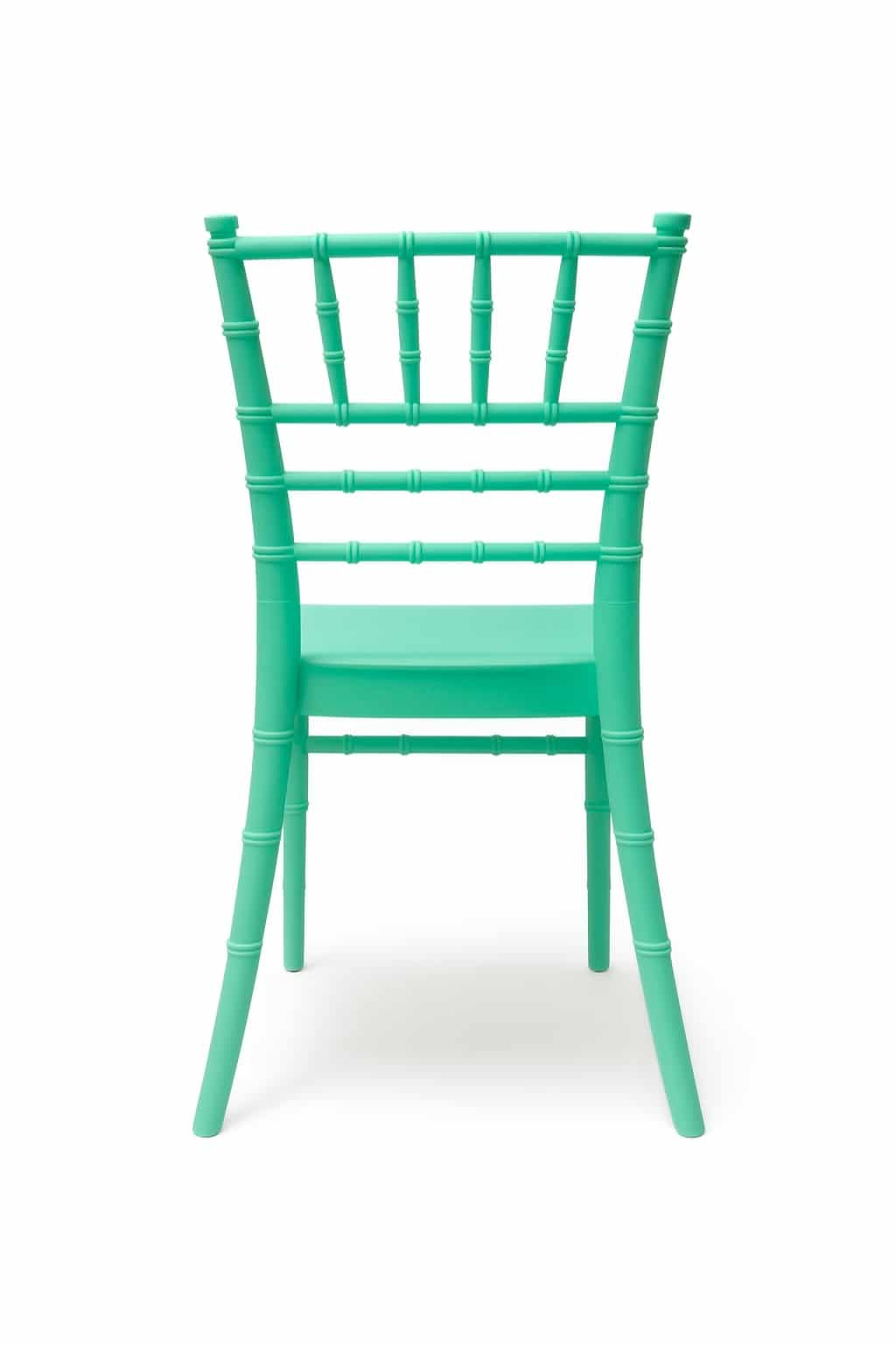 Miętowe krzesełko dziecięce Chiavari z polipropylenu – subtelna elegancja w pastelowej odsłonie