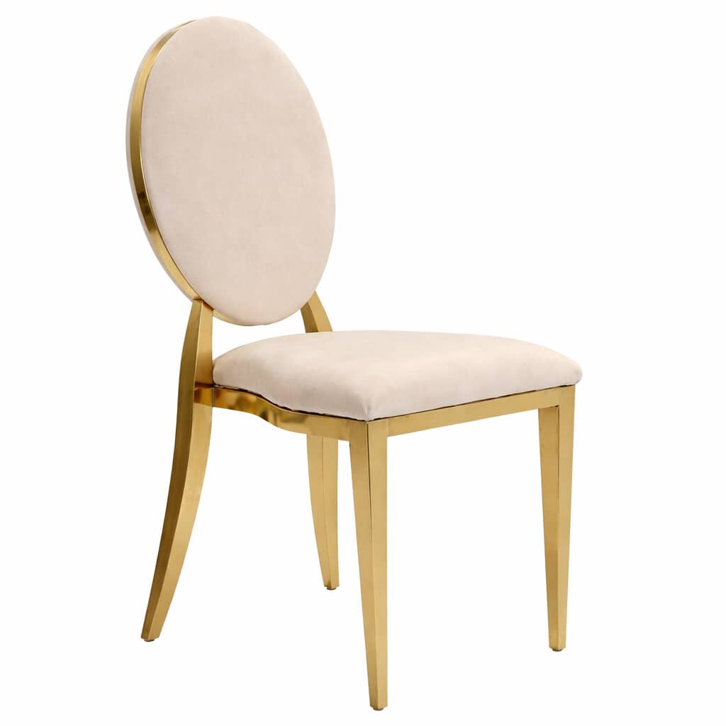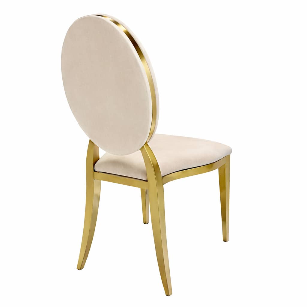 Krzesło Glamour O-Back 8w1 to wyjątkowe rozwiązanie dla sal weselnych, hoteli, restauracji i firm eventowych, które chcą maksymalnie wykorzystać jeden model krzesła w wielu aranżacjach. Dzięki przemyślanej konstrukcji i modułowym elementom jedno krzesło może zmieniać swój charakter w zależności od potrzeb wydarzenia. Eleganckie, owalne oparcie typu O-Back w połączeniu ze złotą ramą nadaje krzesłu luksusowy wygląd, który doskonale wpisuje się w stylistykę glamour, klasyczną oraz nowoczesną. To mebel, który nie tylko spełnia funkcję użytkową, ale również realnie wpływa na estetykę całej sali.