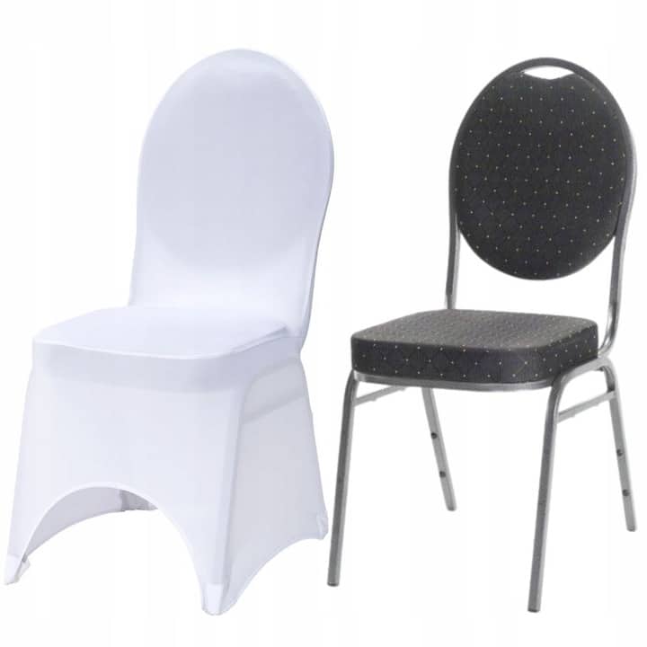 Kompletny zestaw, który idealnie nada się na bankiety, konferencje czy uroczystości rodzinne. Krzesło bankietowe Wenecja w klasycznym czarnym kolorze z delikatnym wzorem z kropki oraz biały, elastyczny pokrowiec z przodem otwartym stworzą wyjątkową oprawę każdej przestrzeni.