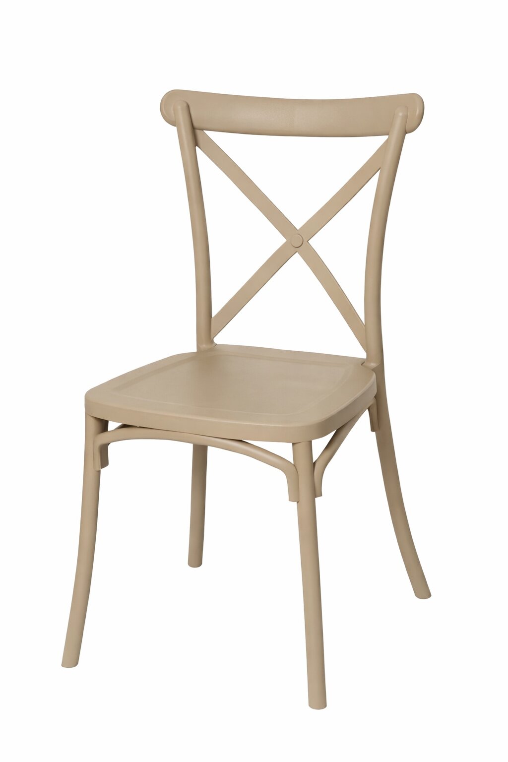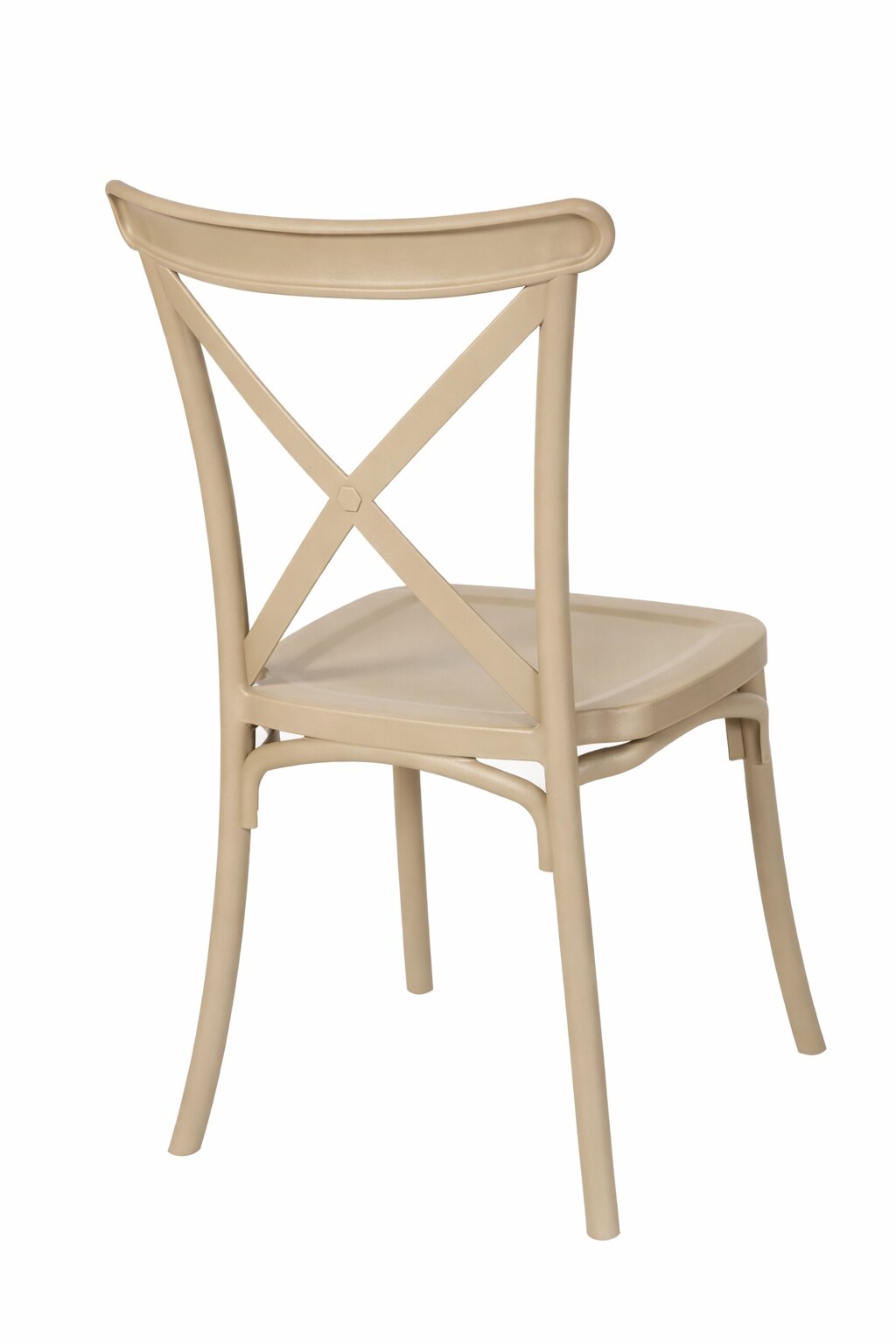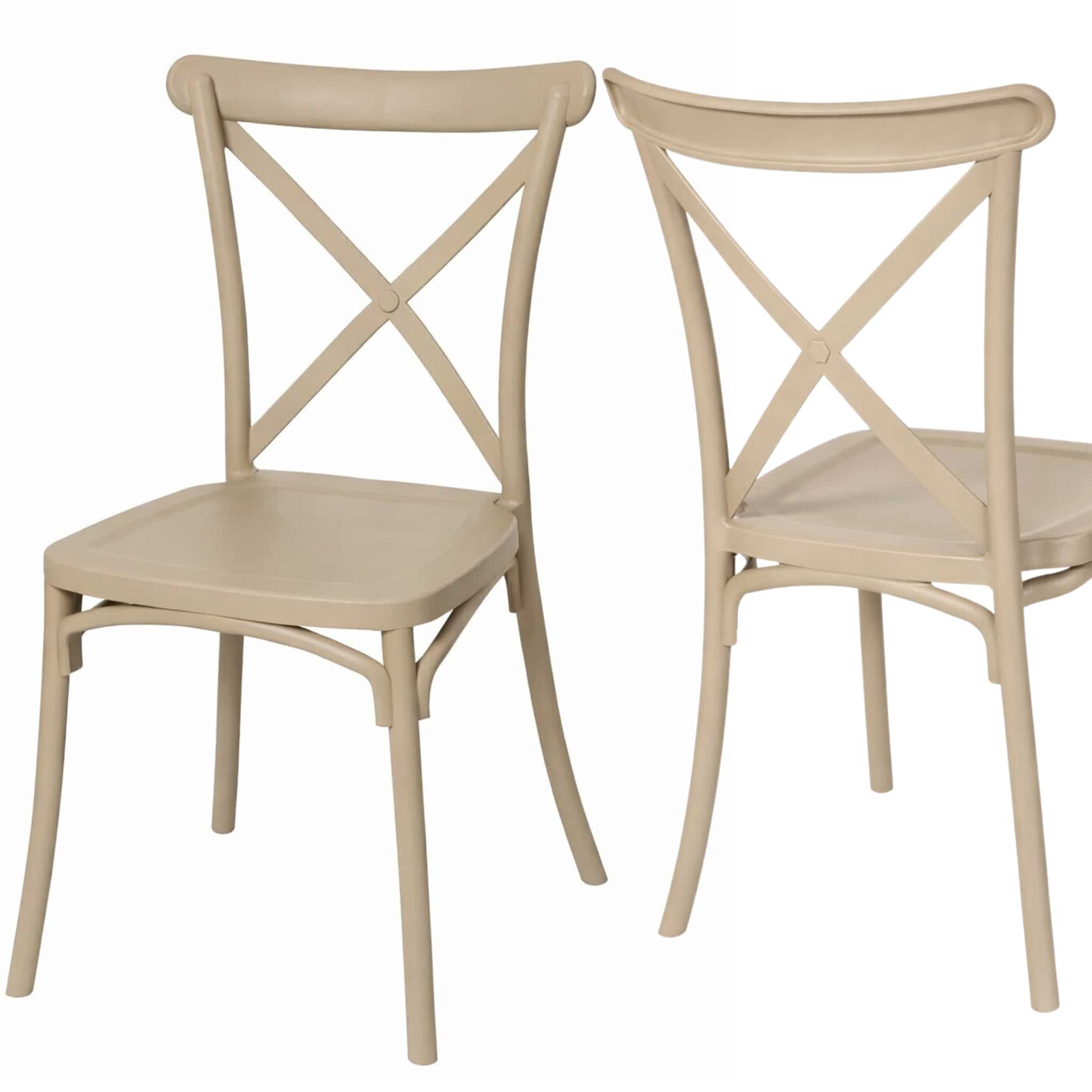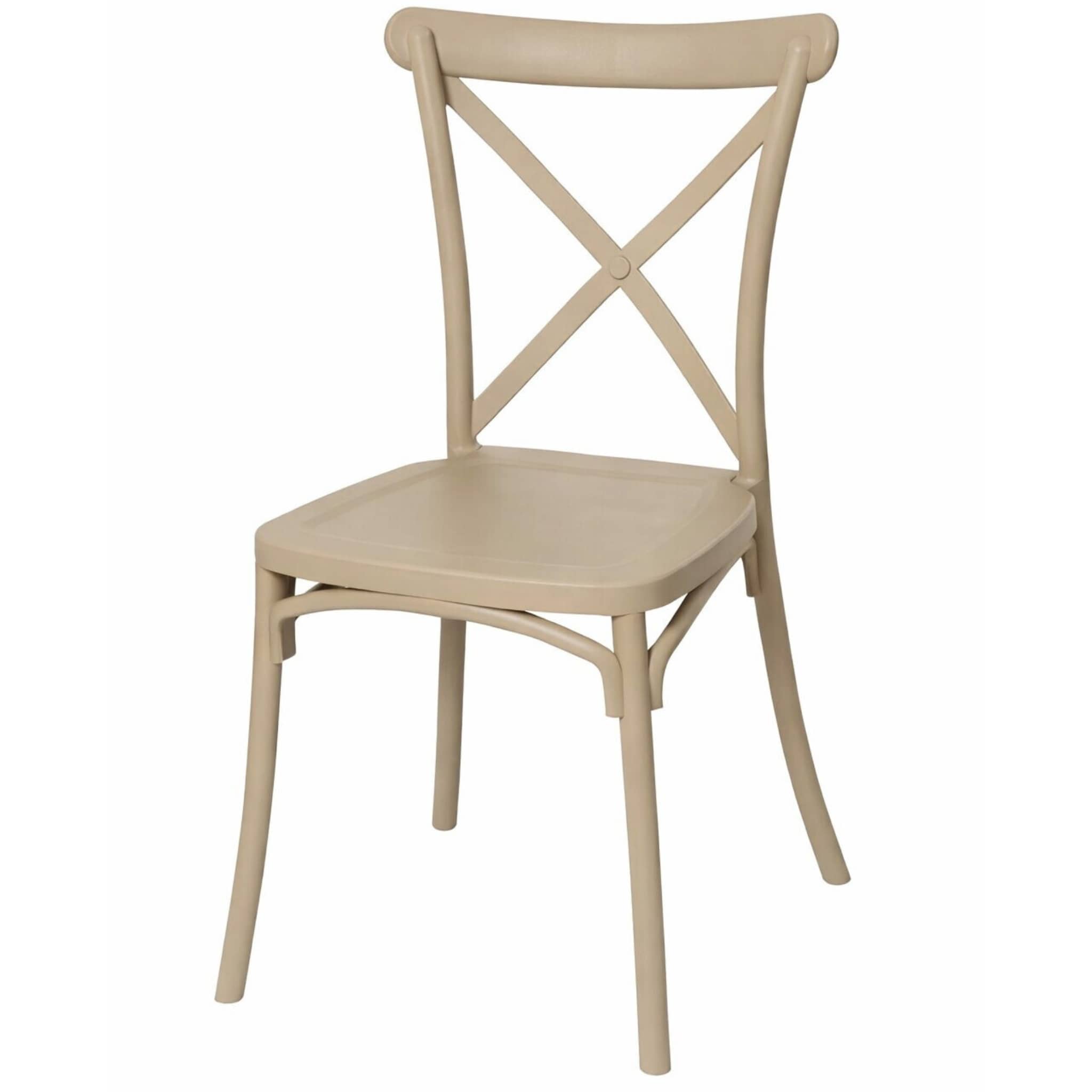 Krzesło krzyżowe Boho z tworzywa – beżowe to ponadczasowy styl i elegancja w jednym. Rustykalne krzesło pasuje do kuchni i jadalni urządzonych w różnych stylach tradycyjnych i rustykalnych. Oprócz kuchni i salonu sprawdzi się także w takich pomieszczeniach jak sale bankietowe i weselne oparte na stylu rustykalnym. Krzesło w całości wykonane jest z mocnego tworzywa sztucznego w kolorze beżowym.