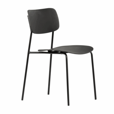 Model Elegante to stylowe i wszechstronne krzesło, które idealnie wpisuje się zarówno w domowe wnętrza, jak i przestrzenie komercyjne, takie jak kuchnie, jadalnie, kawiarnie, biura czy sale eventowe. Matowe, czarne siedzisko w połączeniu z delikatną metalową ramą tworzy nowoczesny, harmonijny design. To doskonały wybór dla osób ceniących minimalizm i funkcjonalność.