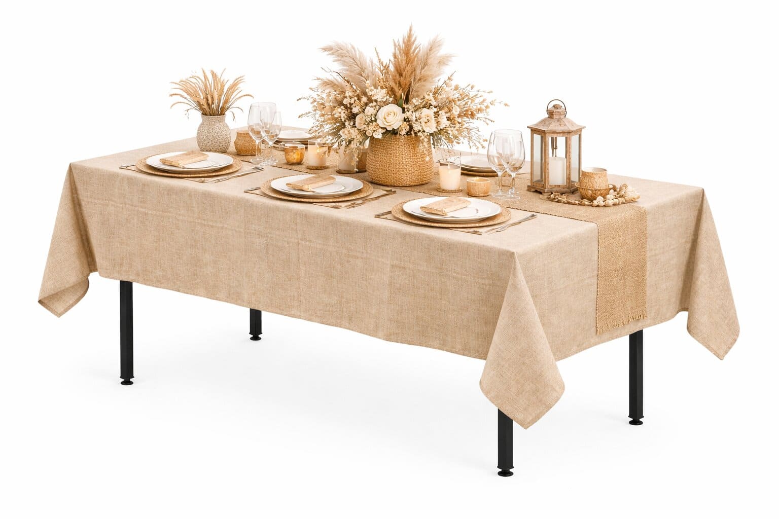 Obrus na stół prostokątny w stylu boho to idealne rozwiązanie dla osób, które cenią naturalne inspiracje i ponadczasową estetykę. Beżowy kolor w połączeniu z subtelną strukturą imitującą len wprowadza do wnętrza spokój, ciepło oraz elegancję. Tkanina wizualnie przypomina naturalne włókna, dzięki czemu obrus doskonale podkreśla charakter aranżacji w stylu boho, skandynawskim, rustykalnym oraz nowoczesnym. To uniwersalny dodatek, który odmieni wygląd każdego stołu.