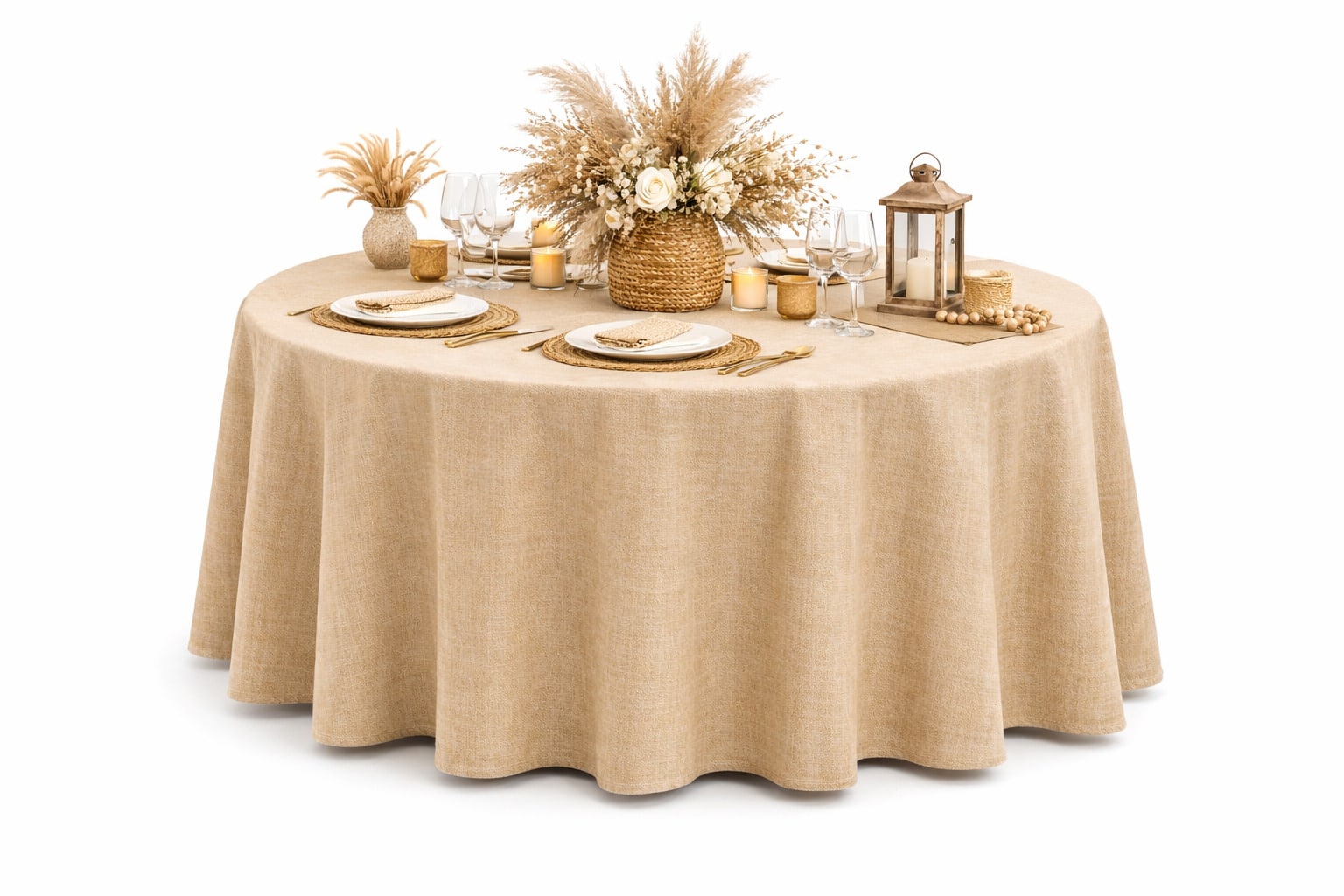 Beżowy obrus okrągły to ponadczasowy element dekoracyjny, który pasuje do wielu stylów wnętrz. Doskonale sprawdzi się w aranżacjach boho, skandynawskich, klasycznych i nowoczesnych. Neutralny kolor pozwala na łatwe dopasowanie dodatków takich jak serwetki, świeczniki czy kompozycje kwiatowe, dzięki czemu można tworzyć różnorodne stylizacje stołu w zależności od okazji.
